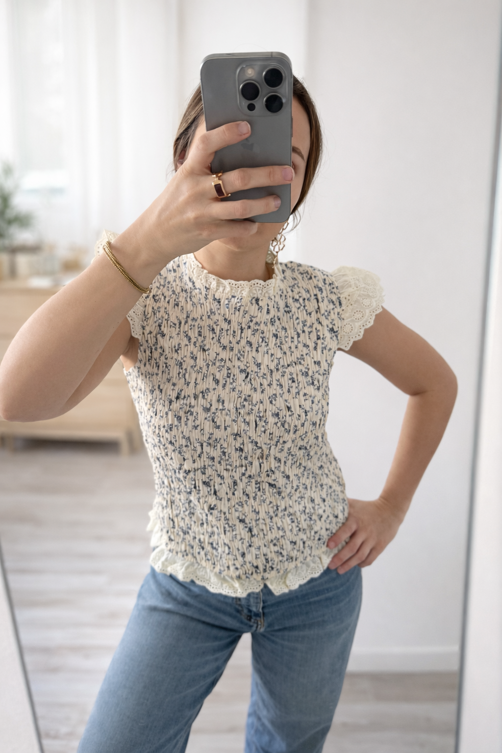 Top smocké et broderie SUZANNE